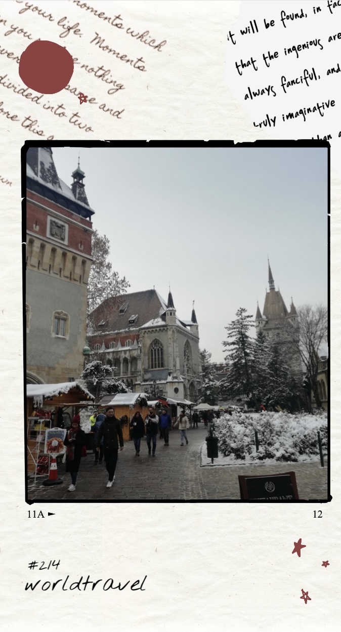 Ci siamo diretti subito al Vajdahunyad, il castello di Pest. Abbiamo esplorato il parco innevato e un piccolo negozio che vendeva prodotti caratteristici situato all’interno del castello!