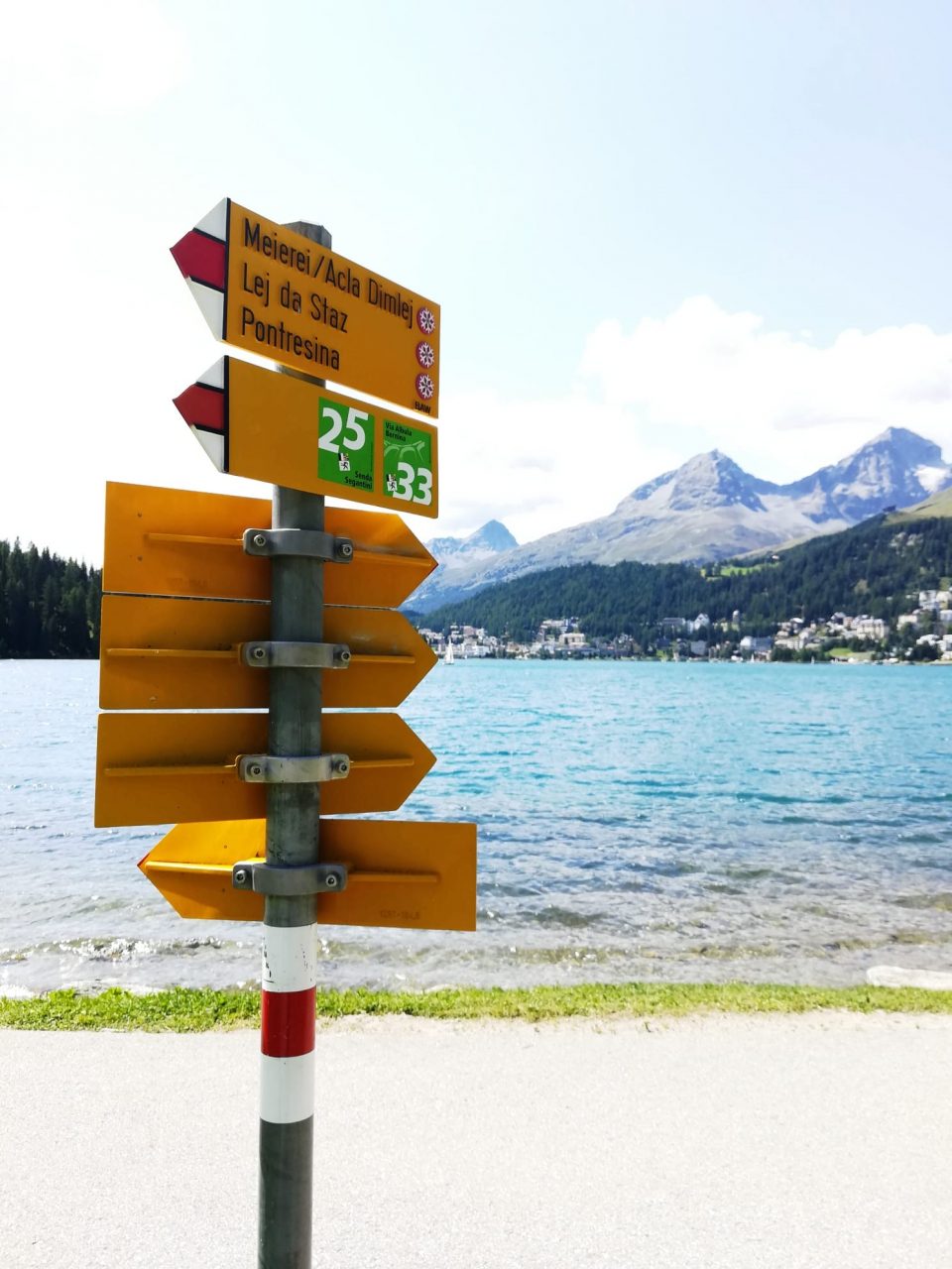 Arrivati a destinazione, sulla sinistra della stazione di Sankt Moritz, ci accoglie il lago di San Maurizio. Con una bellissima pista ciclabile che lo circonda, è l’ideale per fare una passeggiata e sgranchirsi un po’ le gambe dopo il viaggio in treno. Nei mesi di Febbraio per i più coraggiosi, quando fa più freddo, è possibile provare l’ebrezza di pattinare sul lago ghiacciato.