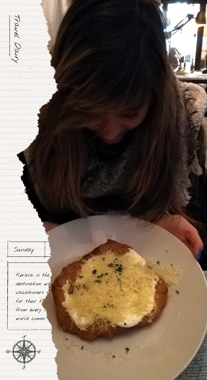 Questo piatto è simile a una pizza ma fritta, senza pomodoro e poco condita, solitamente con panna acida, erba cipollina e formaggio. Ci sono molte varianti dolci e salate e lo potrete trovare nella maggior parte dei bar e ristoranti di Budapest.